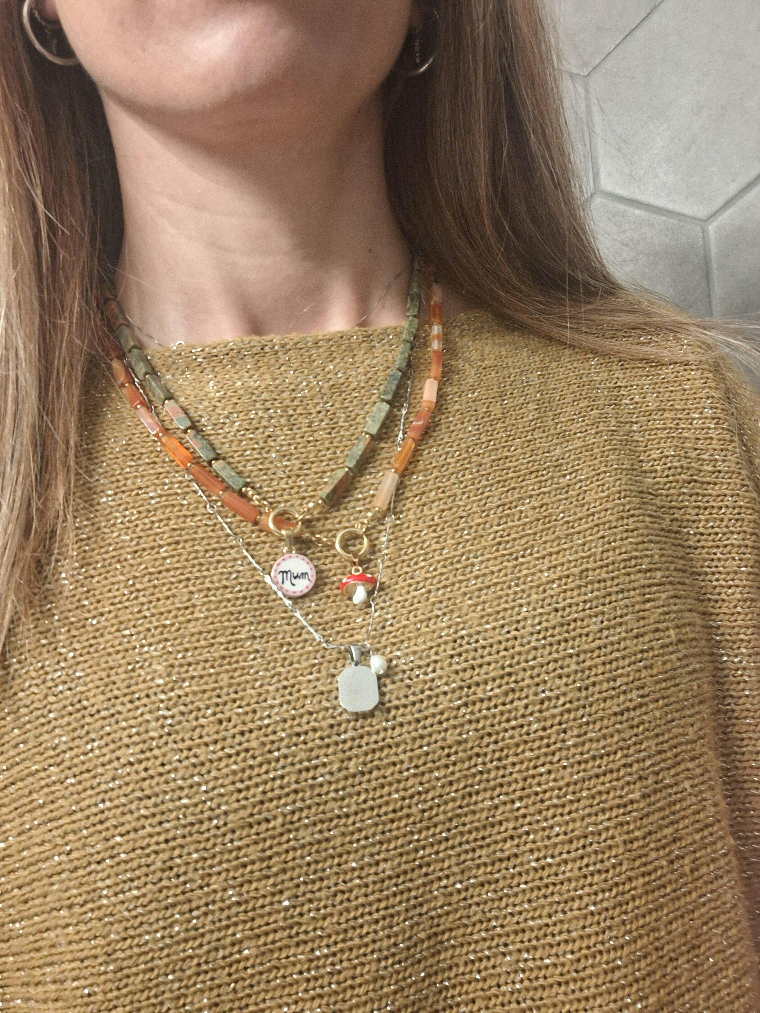 Uno dei miei ultimi acquisti sono le collane Essenza, arancione e verde. Me ne sono innamorata all'istante e ora non me ne separo mai.