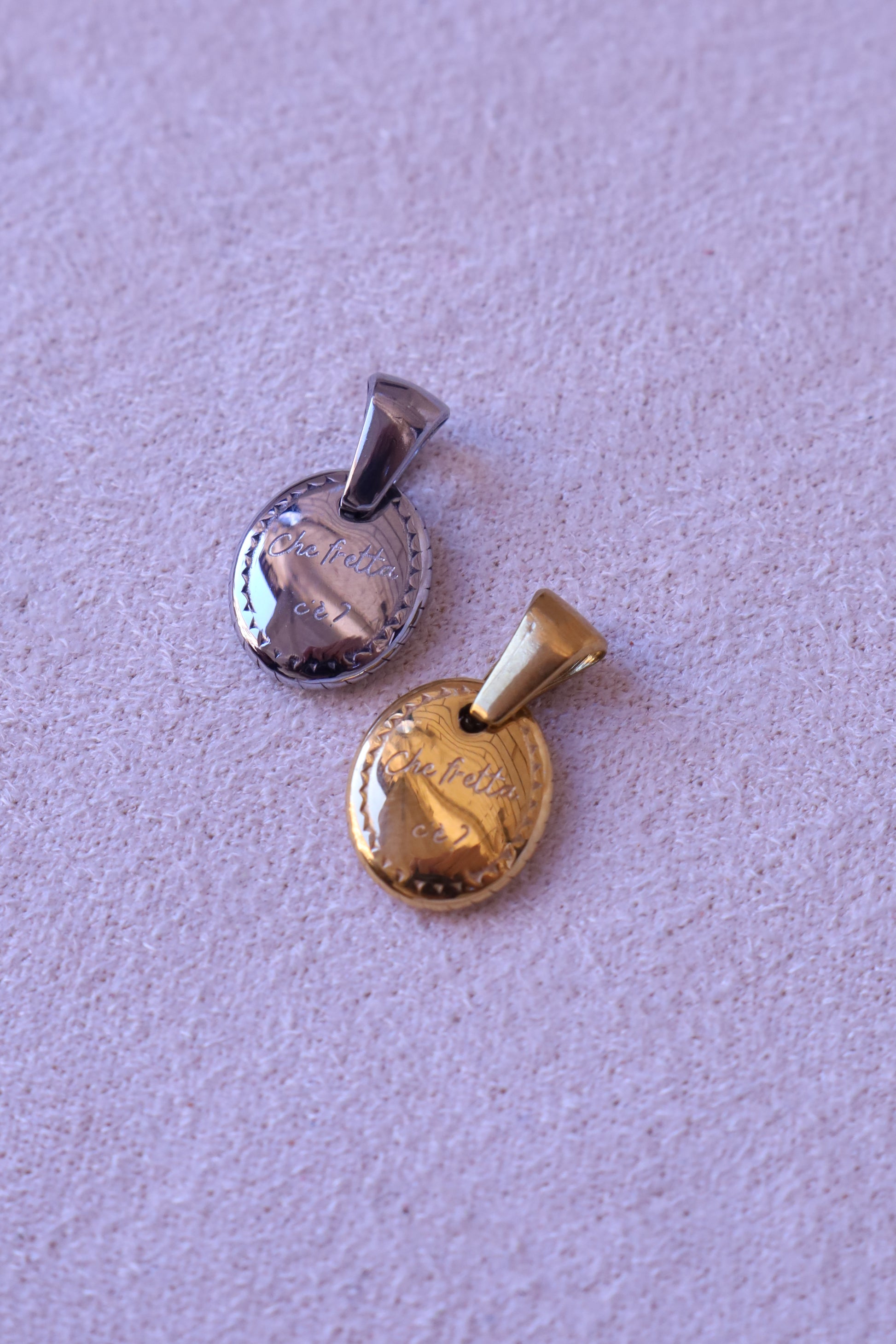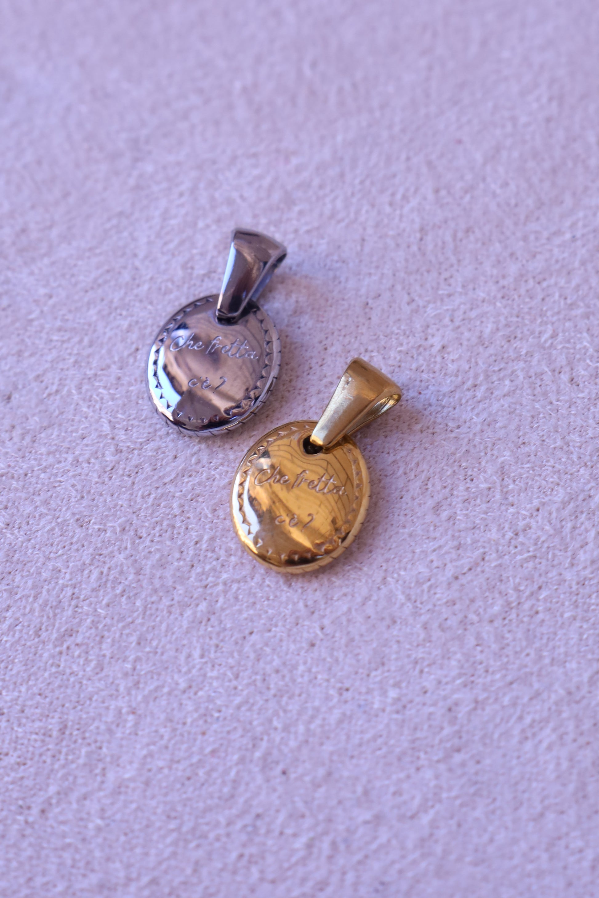 Realizzato in acciaio inox, resistente e duraturo come le cose che contano davvero, questo charm è pensato per accompagnarti ovunque: appeso a una collana, legato a un bracciale, nascosto in tasca come un piccolo talismano contro la corsa del tempo.